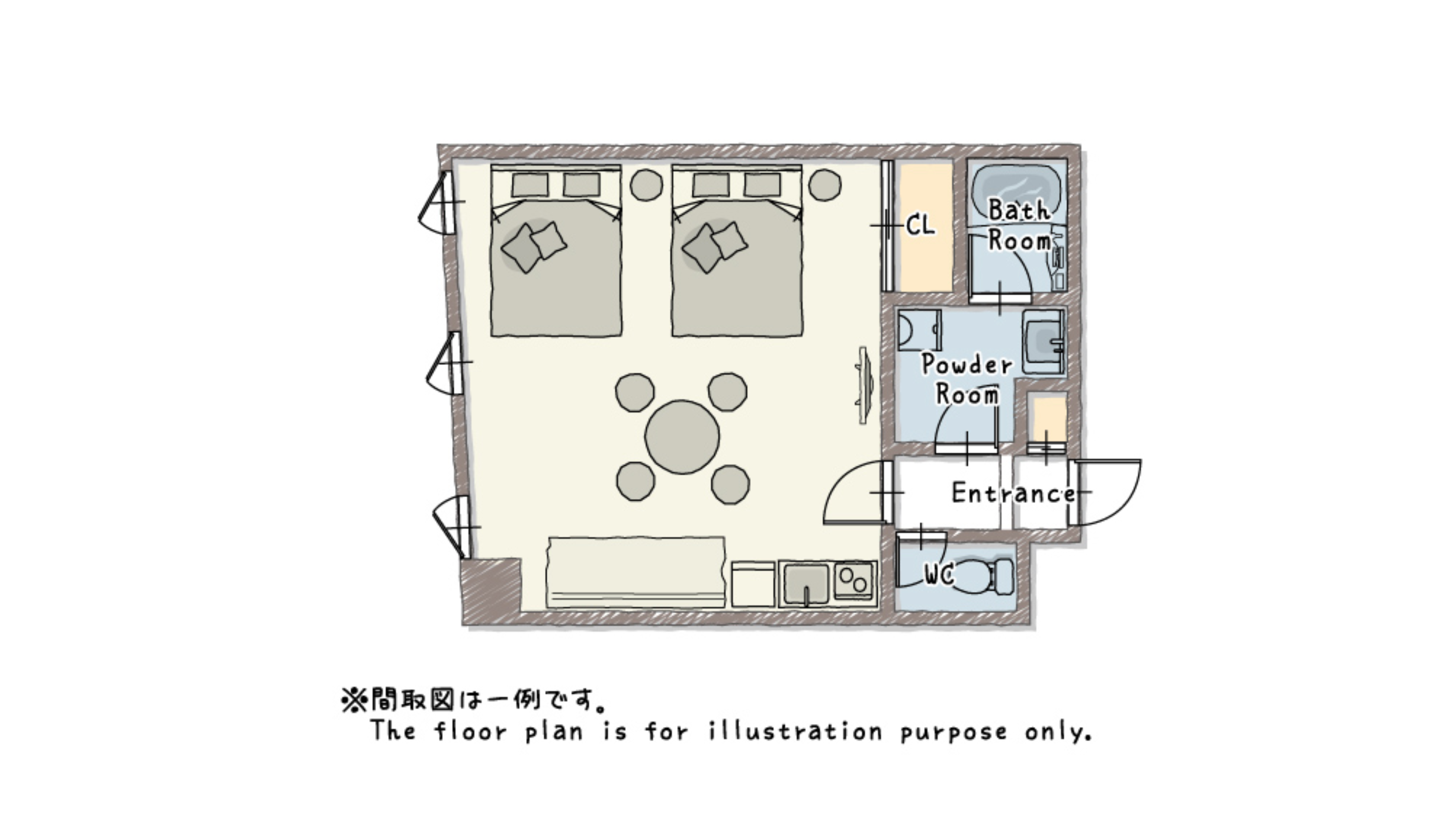 ・Housekeeping services such as room cleaning and towel exchange are not provided during your stay.